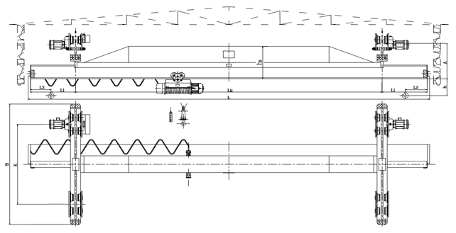 本產品為一般用途起重機,多用于機械制造裝配、倉庫、山洞等場所。起重機主要由橋架(金屬結構)、電動葫蘆、運行結構、電氣設備等四部分組成。
